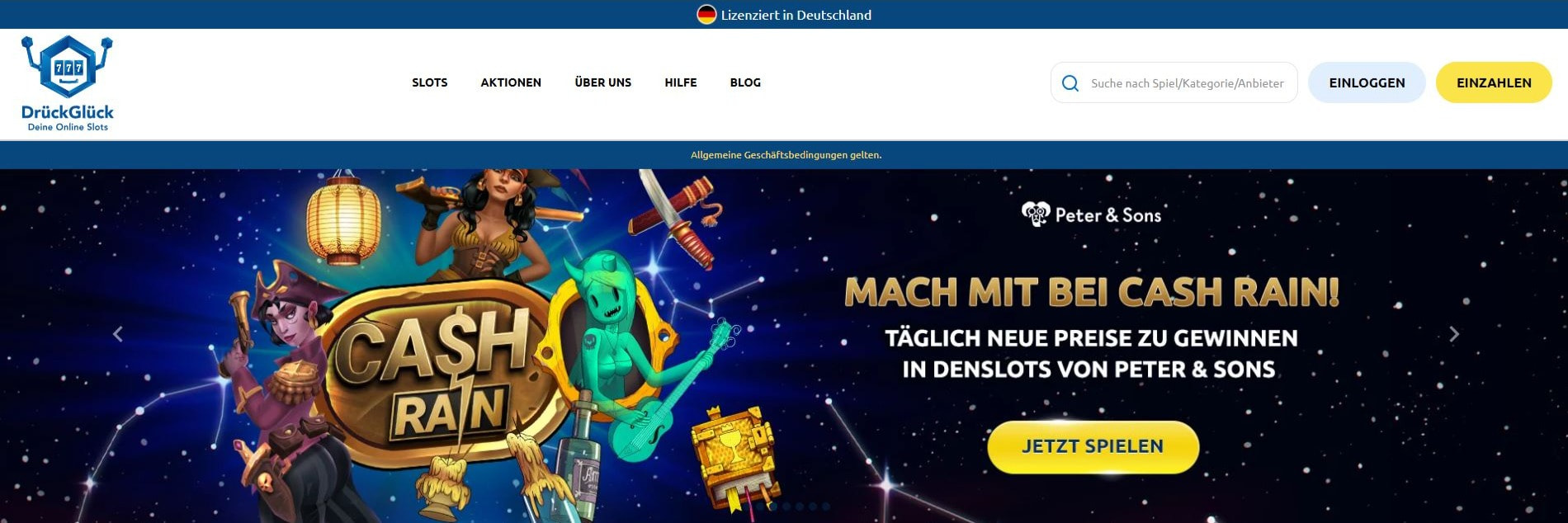 Der DrückGlück Cash Rain findet bis zum 30. Juni 2025 statt und bietet täglich die Möglichkeit, zufällig vergebene Cash-Preise beim Spielen auf Peters & Sons Slots zu gewinnen. Diese exklusive Aktion erstreckt sich über mehrere Monate, um Spielern zahlreiche Gelegenheiten zu bieten, bei der Promotion mitzumachen.