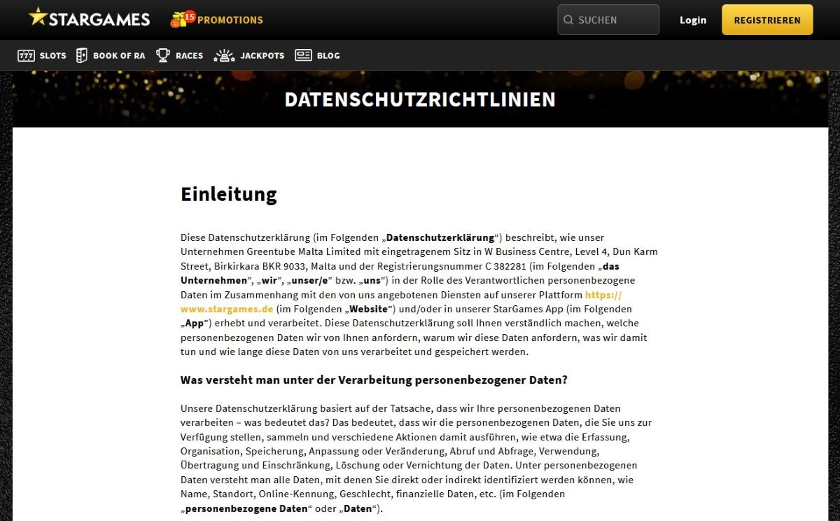 Auf dem Bild: Die Datenschutzbestimmungen eines Online Casinos.