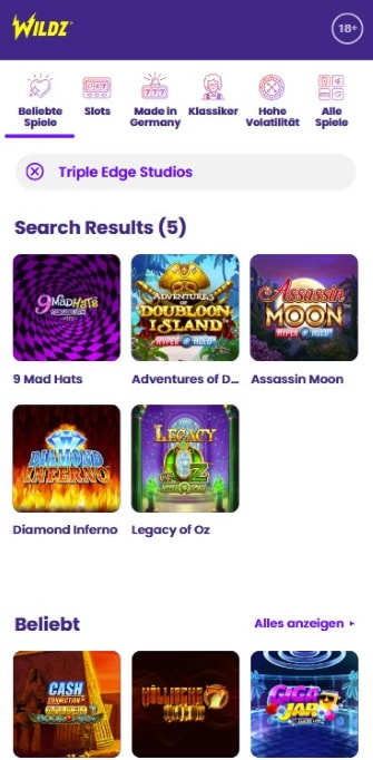 Die Spielauswahl von Wildz.